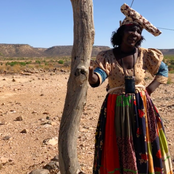Dans la région hostile et désertique du Kaokoland, on découvre des femmes chaudement vêtues à la manière des bourgeoises allemandes du XIXe siècle ! • En la región hostil y desértica del Kaokoland, se descubren mujeres vestidas abrigadamente ¡al estilo de las burguesas alemanas del siglo XIX!